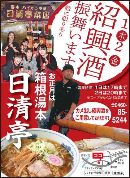Q2:箱根湯本の日清亭で1月1日から何が振る舞われる?