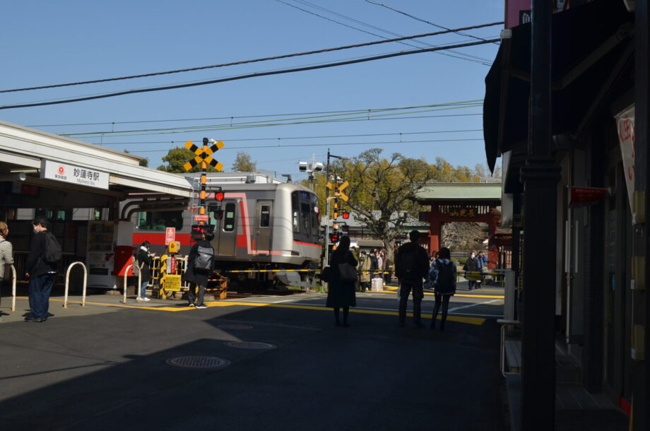 商店街を抜けると妙蓮寺駅、そしてその横に踏切があります。