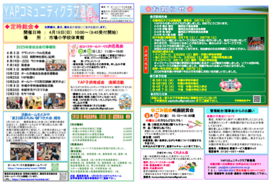 ★YAPコミュニティクラブ通信Vol.192を掲載しました(2026年3号)
