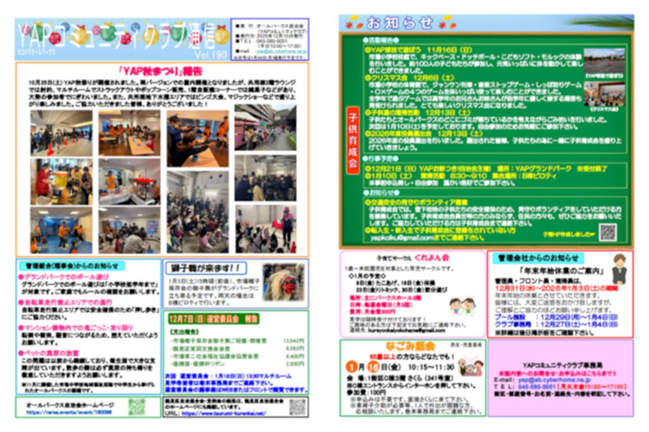 ★YAPコミュニティクラブ通信Vol.190を掲載しました(2025年12号)