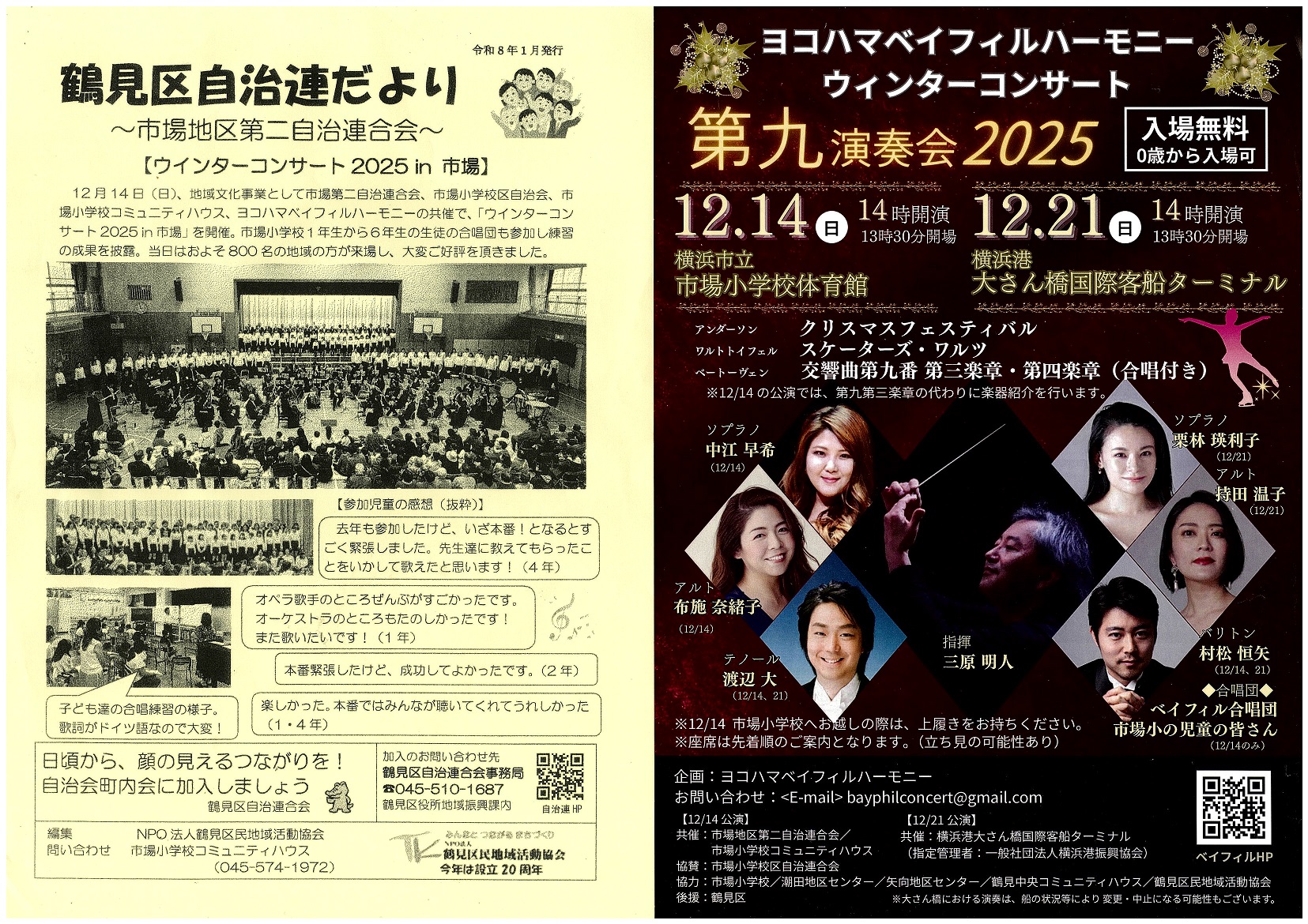 「ヨコハマベイフィルハーモニー2025 ウィンターコンサート 第九演奏会2025」が2025年12月14日に市場小学校の体育館で開催されました。