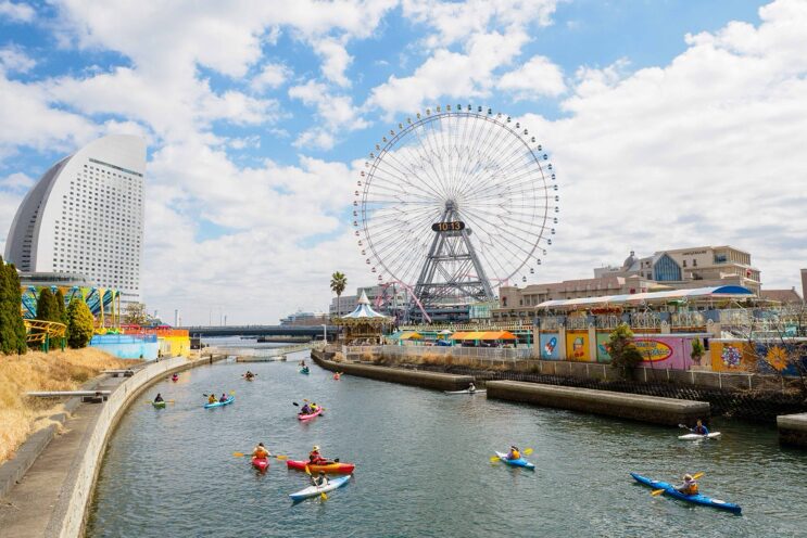 メイン会場のパシフィコ横浜からわずか徒歩10分。“都会でアウトドア体験ができる”と大好評のシーカヤックをあなたも楽しんでみませんか?