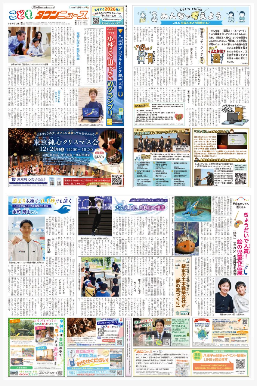 「こどもタウンニュースはちおうじ版」は、八王子市のことを中心に、東京都多摩エリアのいろんなニュースが載っています。「今こんなニュースが話題なんだな!」「こんなことに夢中になっている子が身近にいるんだ!」など、紙面を通して新しく知ることがいっぱい。子どもたちの何かの「気づき」に結びつくことを目指して、日々記者が取材・執筆をしています。
