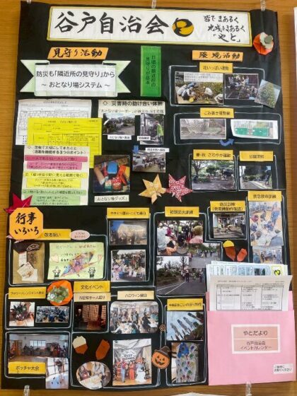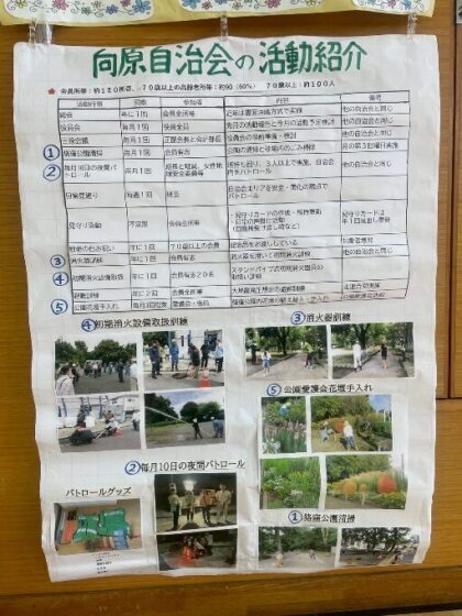 『見守り合いの集い』に、阿久和北部連合自治会の各自治会の活動内容を展示しました。各自治会がそれぞれ工夫を凝らした「手作りの」パネルを紹介します。