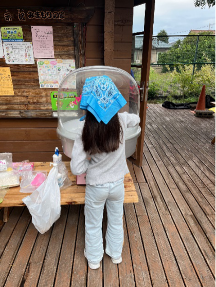 残念ながら雨が降ってしまい、外でのミニゲームは出来ませんでしたが、見守りの家の中で、輪投げ・水ヨーヨーすくい・お菓子すくいを実施しました。子どもまつりで出来なかった「わたあめ」を、翌日10月12日の大カレーパーティーで、楽しんでいただきました。