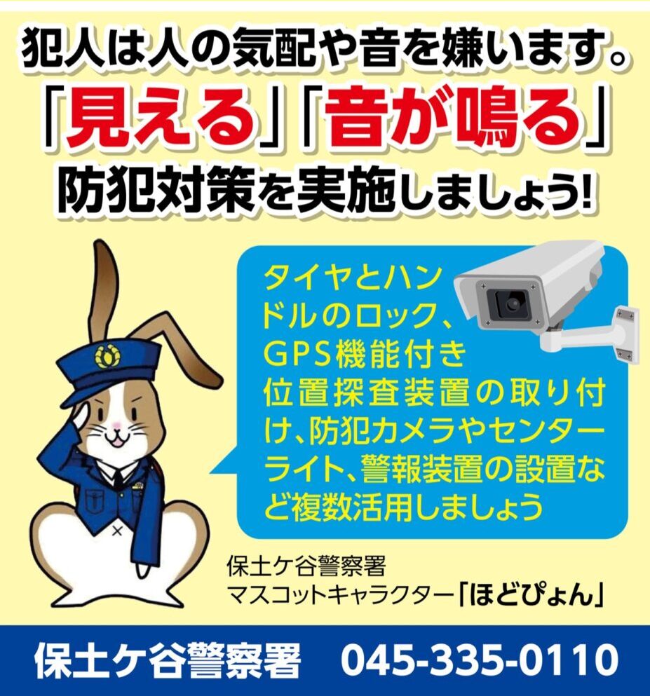神奈川県警は、県内で今年7月末時点で発生した自動車盗が489件で昨年同期と比べて218件増えたことをこのほど発表した。保土ケ谷区内では15件発生し、保土ケ谷警察署は区民に警戒するよう呼び掛けている。同署によると、盗難被害に遭いやすい車種は、アルファード、ランドクルーザー、クラウン、ハイエース、プリウスなど海外で人気が高いもの。長時間、車を離れたところを狙われることが多いといい、注意が必要だ。