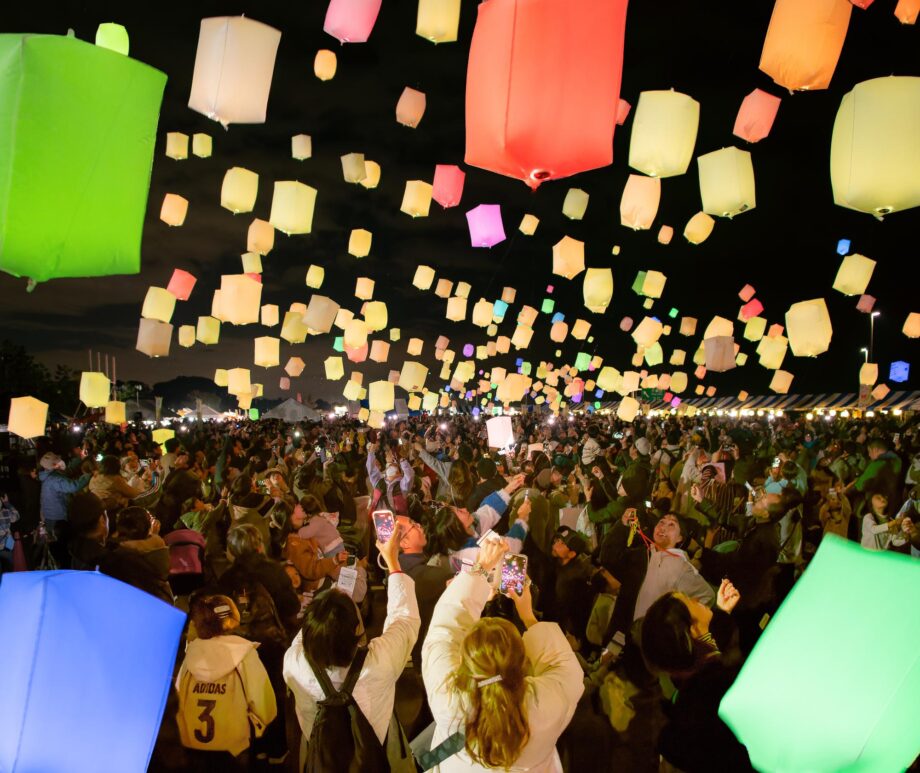 当日はキッチンカーが約20店舗、出店が約100店舗並ぶほか、姉妹都市である長野県小諸市やゆかりの宿場町の産品が堪能できる「ゆかりエリア」も充実。歴史人物が登場する明治仮装パレードや人力車、偉人シールラリーなど、まるでタイムスリップしたかのような風情溢れる空間を楽しめます。昨年初開催で好評だった「大磯スカイランタンフェスティバル」を今年も開催!!昨年は完売したため、事前購入がおすすめです。(https://passmarket.yahoo.co.jp/event/show/detail/0273j2crg8n41.html)
