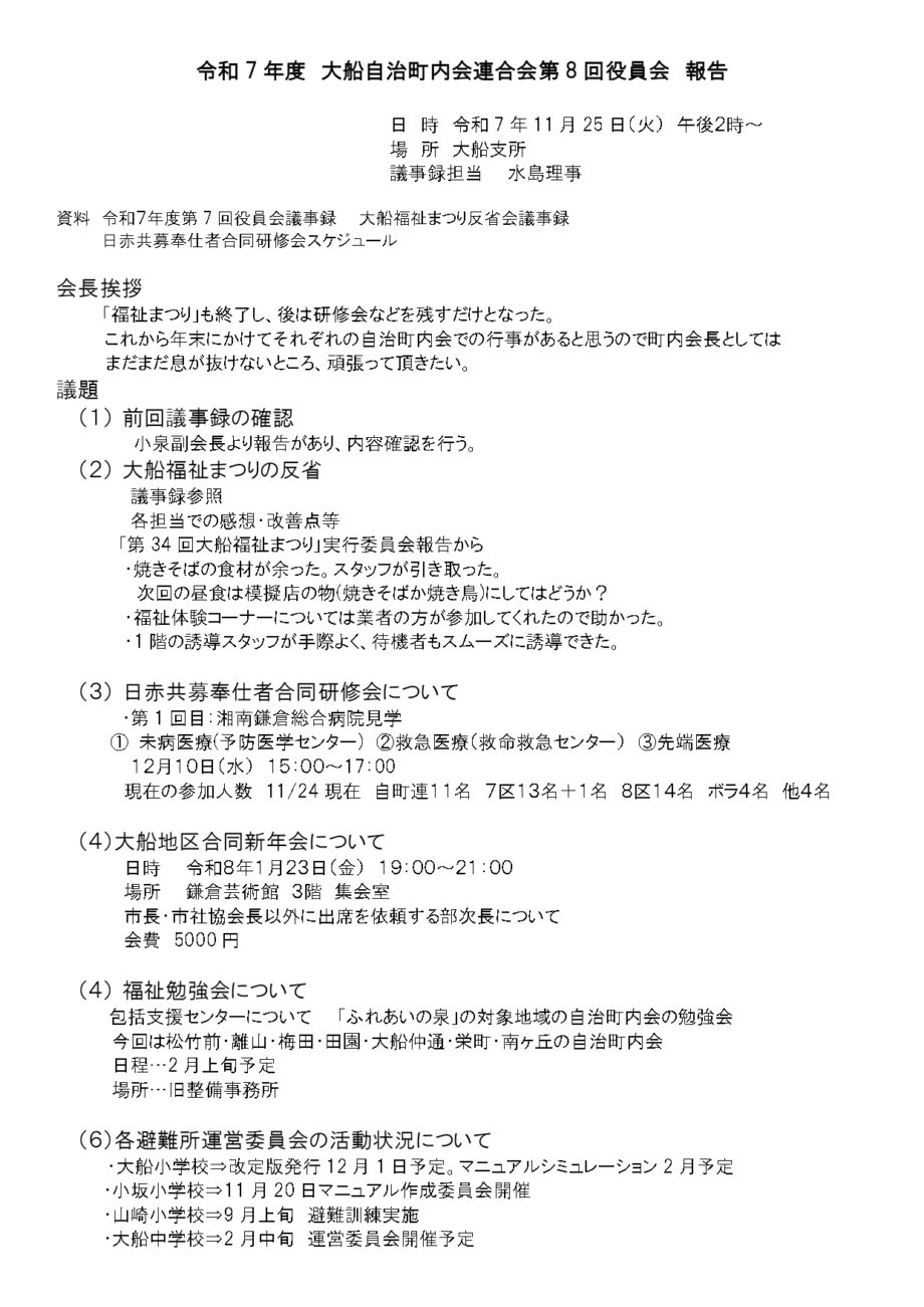 <令和7年度 大船自治町内会連合会第8回役員会報告>