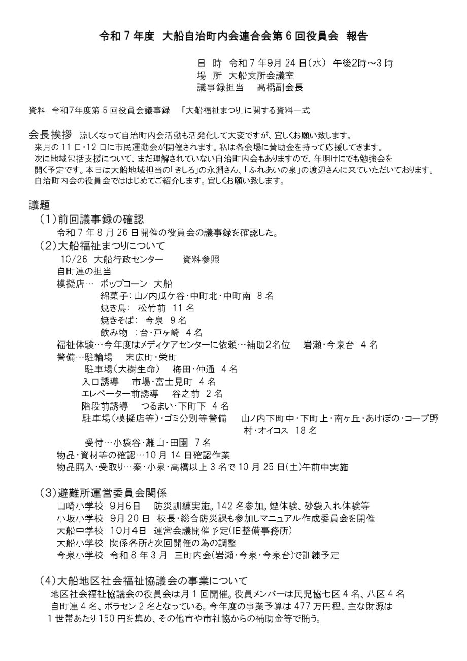 <令和7年度 大船自治町内会連合会第6回役員会報告>