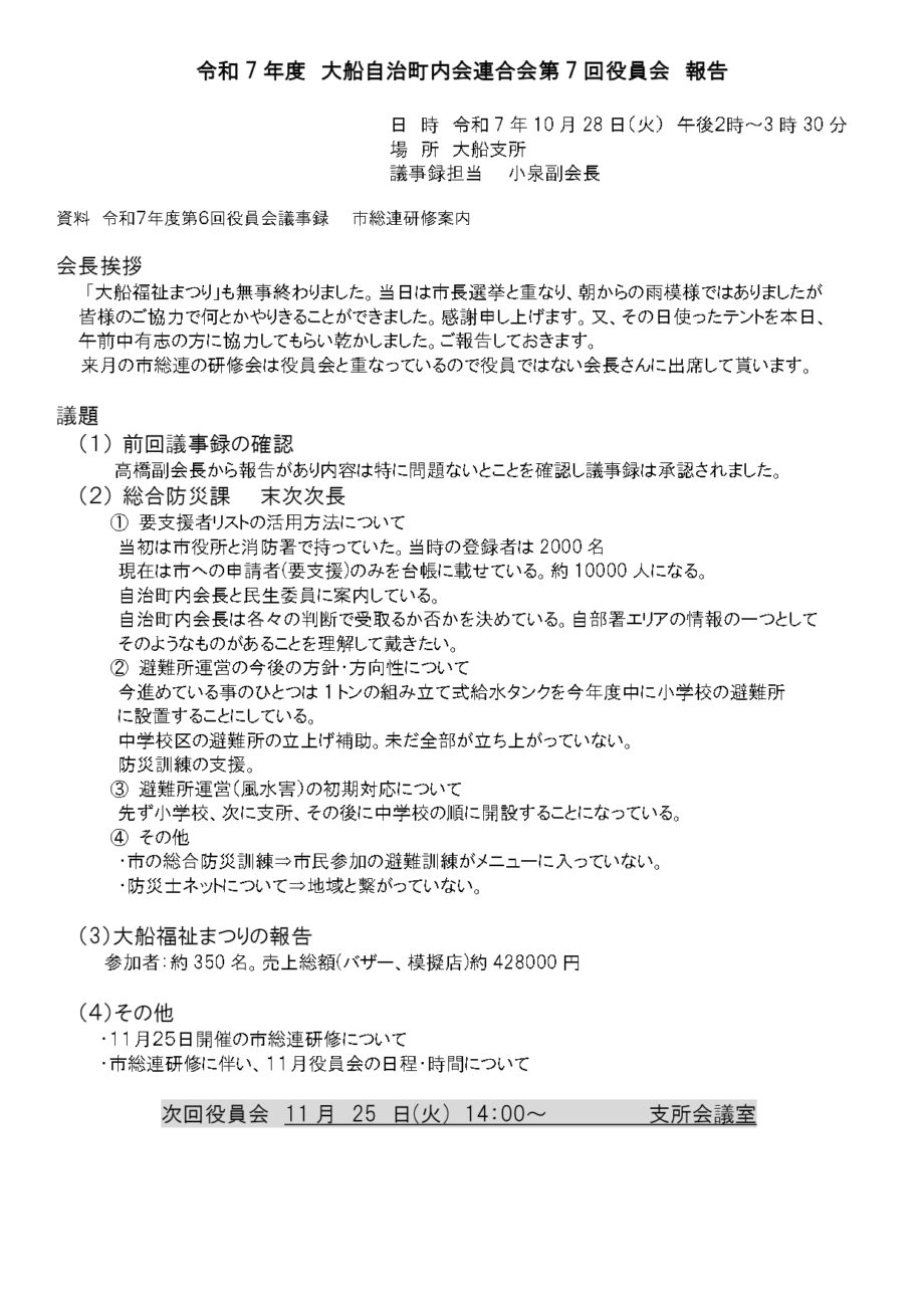 <令和7年度 大船自治町内会連合会第7回役員会報告>