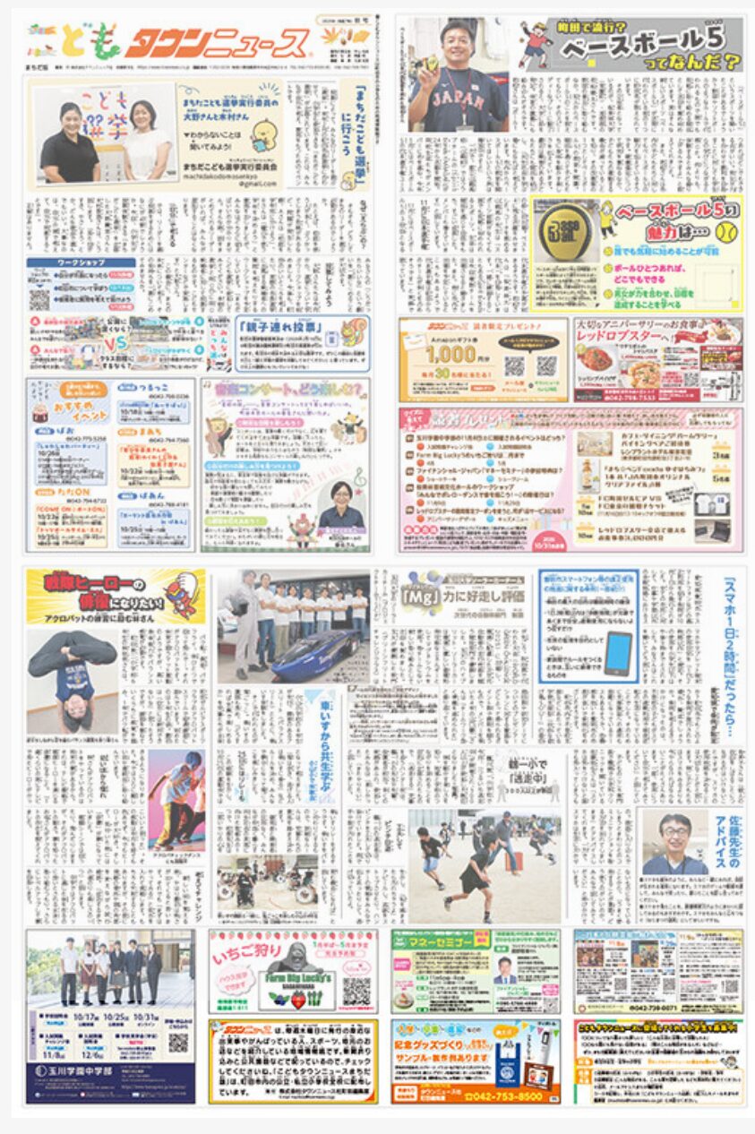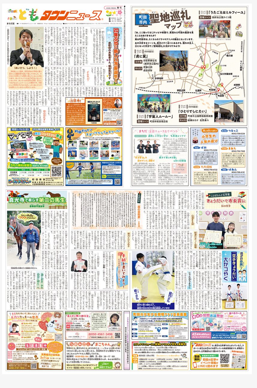 「こどもタウンニュースまちだ版」は、町田市内の公立小学校に通う全児童に無料で配布している地域情報紙です。こどもたちが学び、楽しめる媒体を目指し発行しています。家族団らんのツールとしても活用してもらえればと考えています。