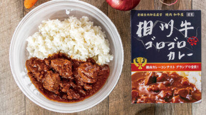 農林水産大臣賞受賞、南足柄産の幻のブランド牛「相州牛」を贅沢に使用した「相州牛ゴロゴロカレー」。
