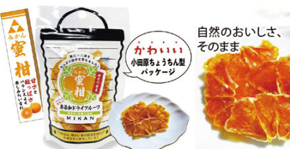 湘南の太陽で育ったミカンをパリッサクッと。爽やかな甘酸っぱさと香りが広がります。砂糖及び食品添加物不使用。