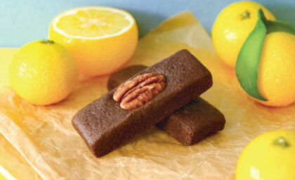 「かながわブランド」にも選ばれる柑橘「湘南ゴールド」のピールを練り込んだ、しっとり食感のチョコレートブラウニー。