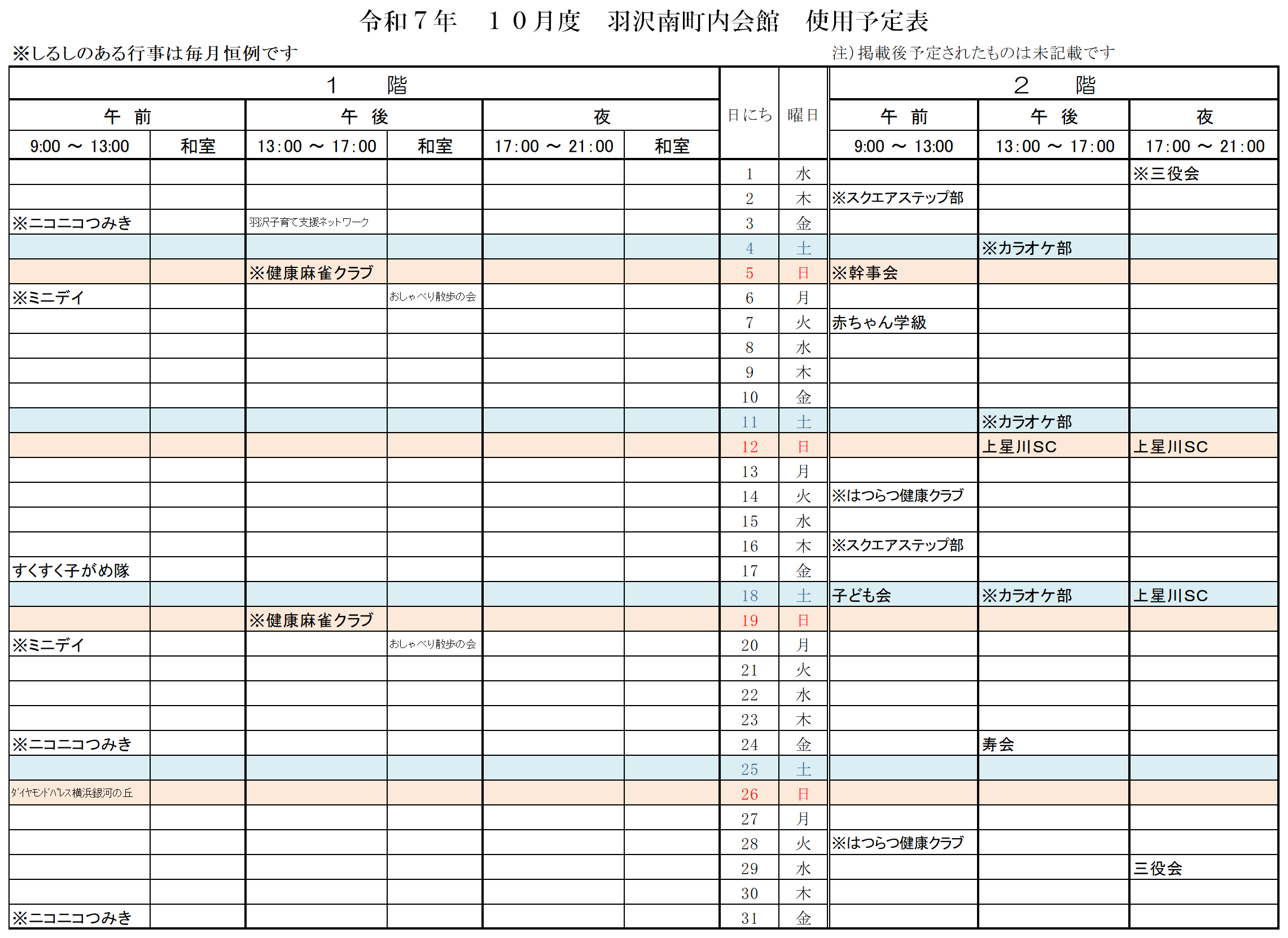 - 令和7年10月度 予定表
