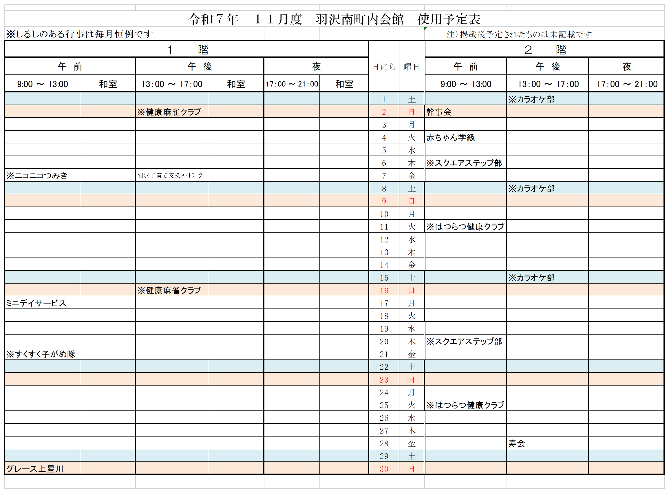 - 令和7年11月度 予定表