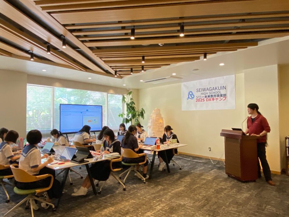 生成AI学習プログラムとして、ソニー・グローバル・エデュケーション開発部長からAIの歴史と未来を学び、生徒たちは中国語・英語・フランス語などの翻訳アプリを作成しました。