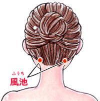 風池(ふうち) …後頭部の髪の生え際で、中心にある左右の筋肉の外側
