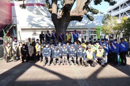 秦野市交通安全対策協議会による年末の交通事故防止運動と年末年始特別警戒地域安全運動が、イオン秦野ショッピングセンターくすの木広場で行われました。