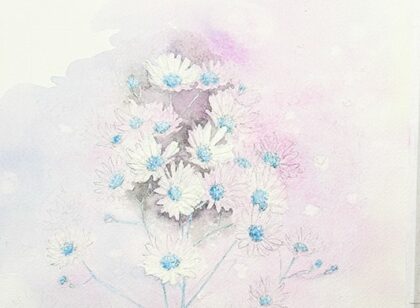 ⑤ 花びらに彩色後、マスキングを剥がし花芯を描いて完成です