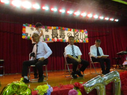 毎年行われる長寿の祝いが行われました。今年は還暦、古希、喜寿、傘寿のお祝いで14名。そして80歳以上15名の方をお祝いしました。皆さんの温かい拍手、言葉にお祝いされた方も嬉しそうに、少し恥ずかしそうに挨拶をしていました。