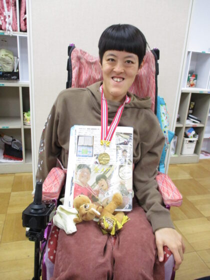 厚木身体障害者等生活介護事業所「とまと」に所属する秋元優香さんが、「神奈川県障害者スポーツ大会」のボッチャ競技(個人戦・座位)に出場し、見事優勝を飾りました。秋元さんは「昨年の雪辱を果たして勝利することができ、本当にうれしいです。サポートしてくれた父も大変喜んでおり、今年は父も一緒にメダルをもらうことができました。」