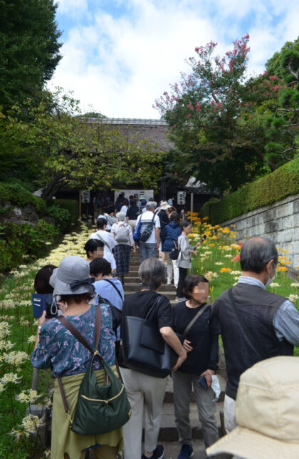 取材日の9月30日は平日ながら、多くの見物客が同寺を訪れていた。都筑区から来た70代の女性は「数日前に来たときはあまり咲いていなくて。今日来てみたらすごくきれいで、いい感じ」と笑顔で話した。また、港南区から訪れた70代の女性も「去年も来たが、今年の方がきれいに感じる」と語った。