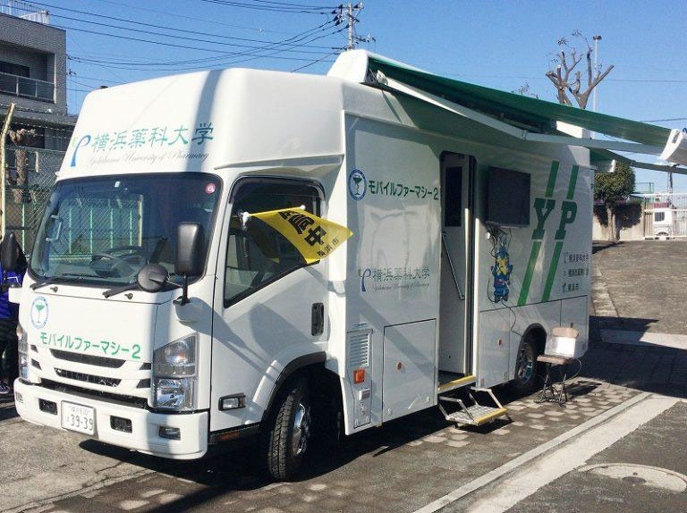 モバイルファーマシーは東日本大震災の教訓から開発された特殊車両で、大規模災害等でライフラインが喪失した場合でも自立して調剤業務と医薬品供給が行える車両です。横浜市薬剤師会と横浜市、横浜薬科大学の3者で共同運用しており、市内で2台所有しています。