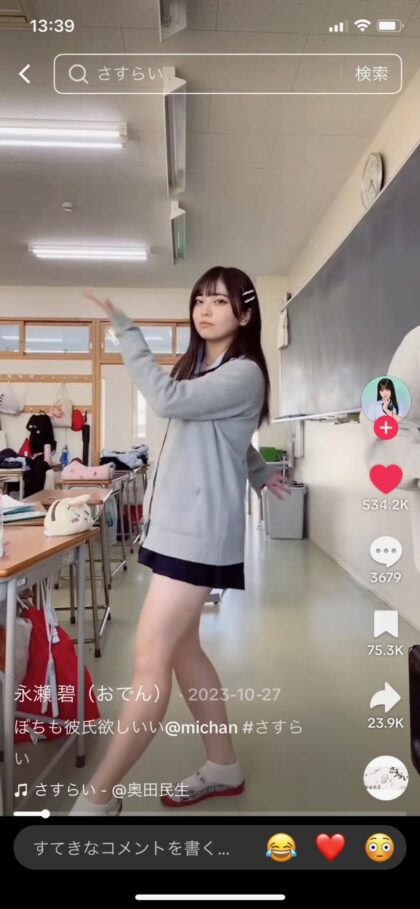 高校1年生の時にTikTokに投稿したダンス動画が大バズり、一躍時の人となった永瀬碧(ながせあおい)さん(17)。「おでんちゃん」、「さすらいネキ」などの愛称で知っている人も多いのでは?