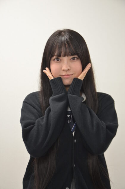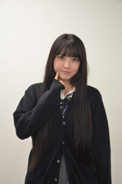 156㎝と小柄な身長に腰まである黒髪ロングヘア―が印象的な永瀬さん。ショートだった中学1年生からのばして今では腰くらいの長さに。今回の取材の後に美容院に行って15㎝ほど切ったそう。