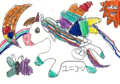 - 「虹色(にじいろ)ユニコーン」 根岸小学校 3年 福田 夏葉(ふくだ なつは)