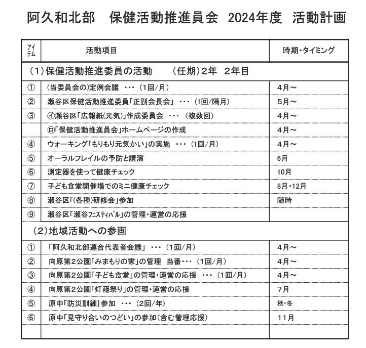 *ホームページレアリア内阿久和北部保健活動推進員会ページの更新