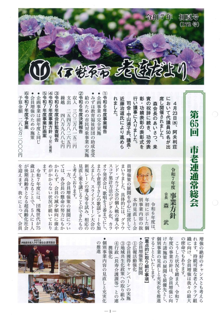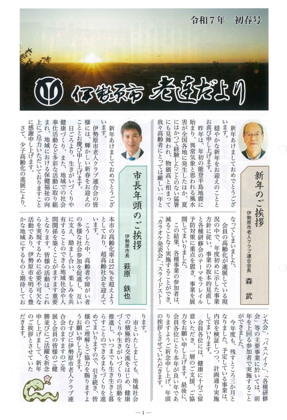 NEW 【アーカイブ】伊勢原市老人クラブ連合会:老連会だより シェアする 年4回発行している伊勢原市老人クラブ連合会が発行する『伊勢原市 老連だより』のアーカイブです。 令和7初夏号 クリックしてご覧ください 令和7初春号 クリックしてご覧ください 伊勢原市老人クラブ連合会ホームページへ 住所神奈川県伊勢原市 公開日:2025-12-25関連タグ体験・学ぶ・教育地域交流 シェア ポストする LINEで送る 関連記事NEW体験・学ぶ・教育 3092026年春休み「韓国パジュ英語村 国際交流キャンプ 」 日本人引率・学習サポート付き ―NEWモノづくり・工場【要予約】1月11日(日)絵本作家を志す初心者のラボ『みんなの絵本ラボ鎌倉』体験&説明会体験・学ぶ・教育 550【随時更新】韓国パジュ英語村で!!キッズサマーキャンプ2025体験記<2026の先行案内も>体験・学ぶ・教育【参加無料・初心者歓迎】小田原市観光協会が風魔忍者「お試し稽古」参加者募集! 人気記事NEW観光・レジャー・遊び 43245<2026年最新!駐車場9か所紹介>サザンビーチに行くなら駐車場はここ!茅ヶ崎海沿い駐車場情報【サザンビーチ周辺】NEW観光・レジャー・遊び 20027<2026年最新!駐車場9か所紹介>茅ヶ崎パーク(ヘッドランドビーチ)にアクセス良好なパーキングまとめ!サーフィンやSUP、海水浴に大活躍!NEW住まい・暮らし・生活 14038【タイトル】茅ヶ崎FMで『#ちがすき』を放送中!移住者や様々な分野で活躍中の子どもたちが茅ヶ崎の魅力をお届けします住まい・暮らし・生活 13151<12/9更新>自然豊かな西丹沢に暮らそう!駅近&家賃補助つき山北町営住宅(移住定住促進住宅) 注目記事NEW取材レポート<あじさいちゃんが行くvol.3>いよいよフィナーレ!開成町町制施行70周年記念イヤーレポNEW住まい・暮らし・生活さかえの商店街探訪!Vol.5「お気に入りの服を長持ちさせる方法」NEWまち歩き・ウォーキング 577<2025年>第5回・ふじさわ歩くトクトク歩数チャレンジ【グループ歩数チャレンジ】結果発表NEW住まい・暮らし・生活【秦野市】「走るたび好きになる街 はだの」公開中