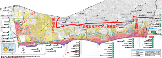※訓練当日は、避難目標ラインより北側の津波一時退避場所・指定緊急避難場所については、避難することができません。また、訓練当日に施設内へ立ち入ることができない施設もあります。詳細は市HPをご覧ください。