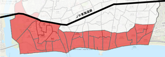 - 対象地域:津波浸水想定区域を含む、字・丁目のうちJR東海道線以南の地域