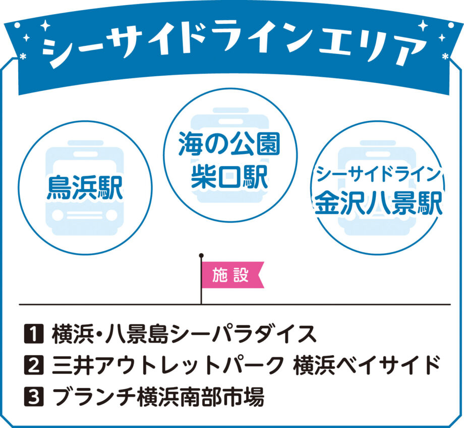 期間中、横浜シーサイドラインでは3駅と3施設(シーサイドラインエリア)、JR東日本では3駅と3施設(みなとみらいエリア)で限定のスタンプを取得できます。取得した限定スタンプの数や達成条件に応じて、素敵な賞品をゲットしよう!