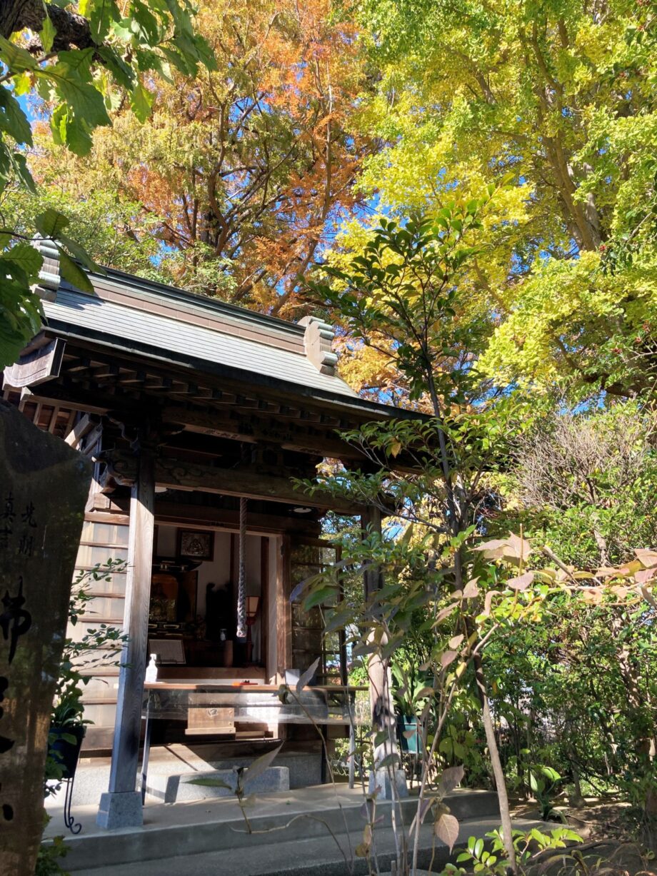 次は「全通院勢至堂(ぜんつういん せいしどう)」へ。現地の看板によると、こちらは徳善寺の別院。瀬谷八福神でもあり、知恵・長寿の神様である「寿老人」が祀られています。紅葉の見ごろは過ぎた感もありましたが、境内の葉っぱの絨毯が秋の深まりを感じさせます。