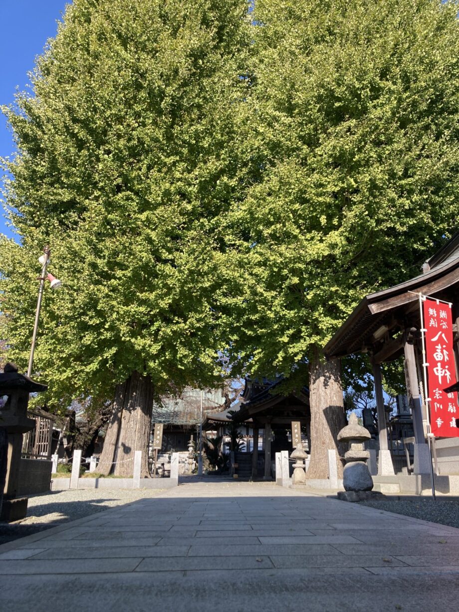 ペダルを漕ぎ進め、中原街道沿いの「宗川寺(そうせんじ)」へ。山門脇に大きな2本の銀杏(いちょう)があります。「夫婦銀杏」と呼ばれるもので、昔から多くの方が安産・育児を祈願するために訪れていたそう。取材日の葉はまだ青く、先端にわずかな黄色をのぞかせる程度。ぜひ、再訪して、色づいた様子を見てみたくなりました。