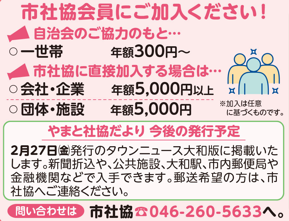 皆さまからの善意の寄附をお待ちしています。ご協力よろしくお願いします。 問い合わせ:市社協 【電話】046-260-5633