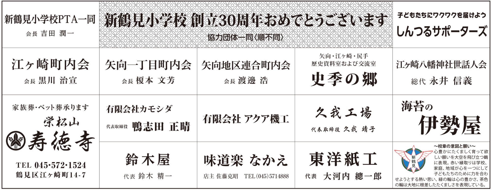 新鶴見小学校は開校以来『地域とともに歩む学校』を目指し、地域と共に発展してまいりました。初めは小さな学校として誕生しましたが、学校、保護者、地域が協力して『スクールパートナー』が結成され、その想いが『しんつるサポーターズ』に繋がり、地域協働で共に成長して参りました。