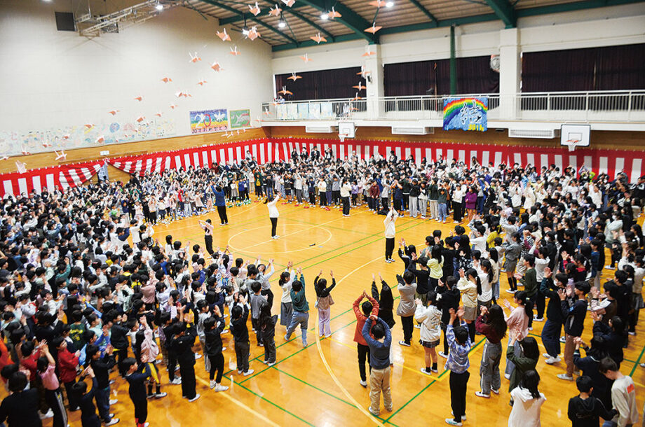 各学年の発表では「地域」や「保護者」「未来へ」など、それぞれのテーマに沿ったダンスや歌などで会場が大盛り上がり。また、ステージには鶴の飾りが登場し、「30周年おめでとう」のメッセージで祝った。そして、この日のために児童たちが折った鶴で「結」の文字を描いた記念飾りがお披露目されたほか、周年記念ダンスを全校児童で踊るなど、児童や学校関係者、地域住民みなで周年を祝った。