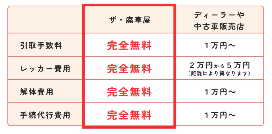 走行距離が多い車、古い車、事故車、動かない車、故障車、何でも買い取ってくれる上に、面倒な書類の記入や運輸局への提出など、廃車や売却に関する全ての手続きも無料だという。「2万円買い取りは軽自動車の場合。車種によっては7万円以上の値が付くこともあります。車の下取りが0円と言われた時にも、ぜひ一度連絡してほしいですね。手続き費用も完全無料です」。