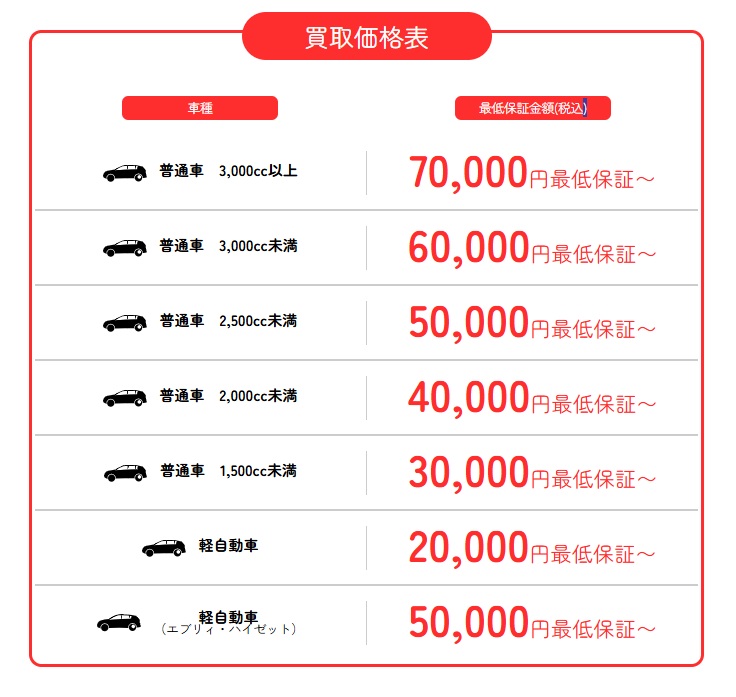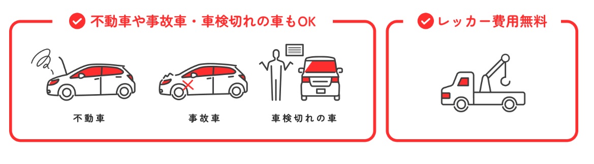 - どんな車も2万円以上で買ってもらえる
