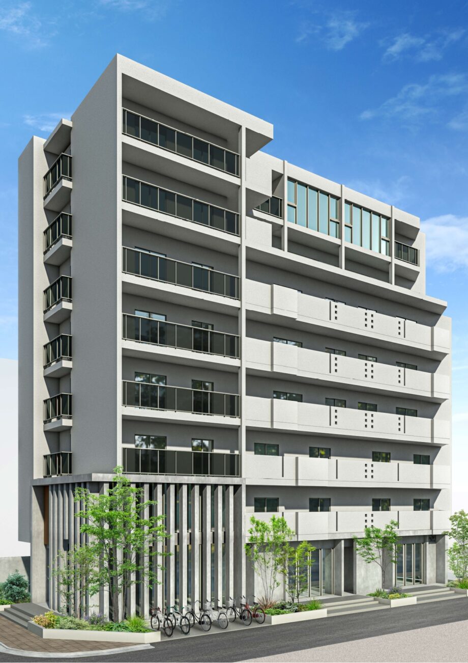 吉羽氏が湘南地域を強みとするユーミーらいふグループの建物を設計したのは、平塚市代官町・見附町の2棟に続き、3棟目。鉄筋コンクリート造の賃貸マンション「GRANDREVE(グランレーヴ)シリーズ」となります。