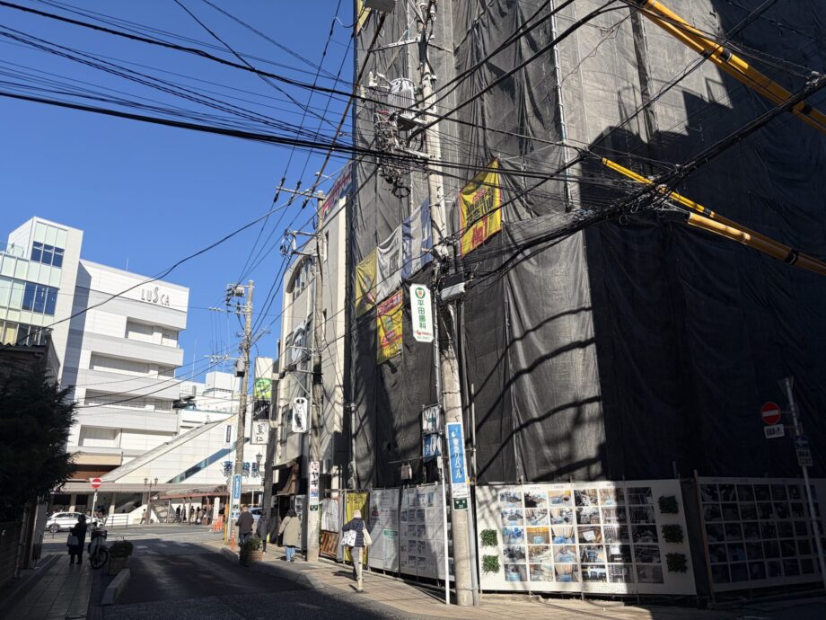 茅ケ崎駅南口のパチンコ屋だった、空き地だったあの場所。2025年9月から着々と工事が進み、あっという間に高い建物が立ちました。まだ養生幕は張られているものの、「あれ?完成間近なんじゃ…」と思いながら見上げている人もいるのではないでしょうか。