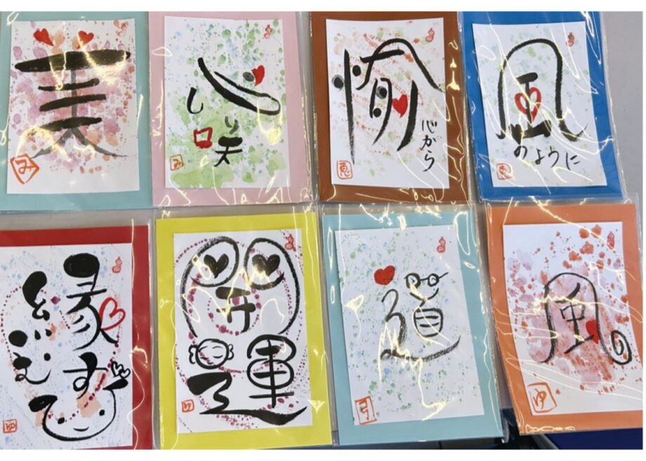 屋内ブースでは「己書(おのれしょ)体験会」を実施。筆ペンを自由に走らせて描く温もりのある書で、自分だけの作品を仕上げる。時間は午前10時30分から正午まで。対象は誰でも参加可能で定員は先着24人。材料費込み600円。