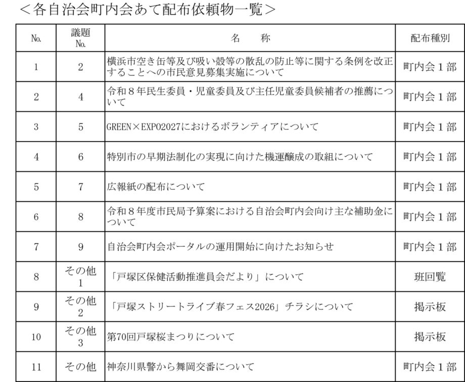 区政推進課/町内会1部/令和8年度も引き続き、広報よこはま等の広報紙の配布にご協力をお願いします。 <資料はコチラ>