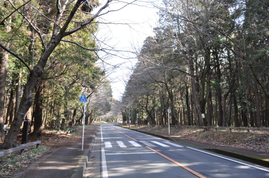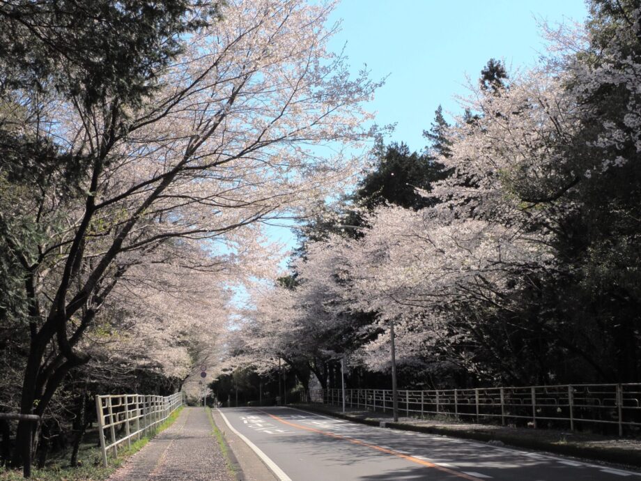 道路沿いにはソメイヨシノが植えられており、満開の時期には見事な桜のトンネルが迎えてくれます。森の静ひつな空気と桜の香りに包まれ、心身ともにリフレッシュできますね。なお、市民の森の中は走行できないので、注意が必要です。