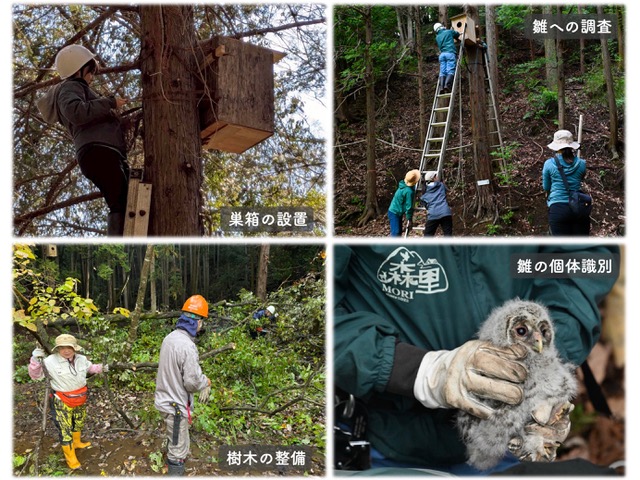 森里では、厚木市内で絶滅の危機に瀕する『フクロウ』を守るためのプロジェクトを実施しています。フクロウの暮らす森は、自然が豊かな証拠です。そんな自然豊かな森をみんなで増やしませんか?