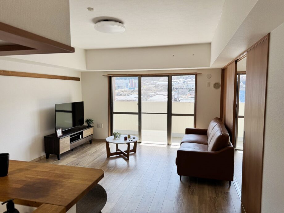 406号室の主役は、なんといっても開放感のあるLDKです。南側の窓からは、山北の澄んだ光がたっぷりと差し込みます。